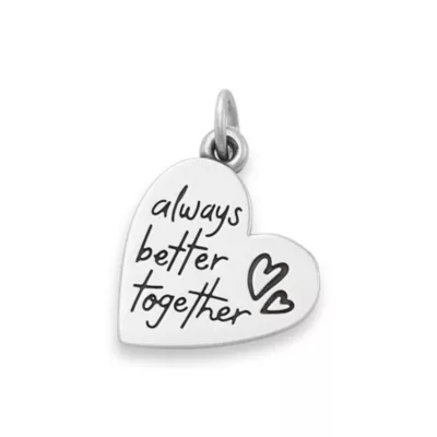 Life is a more enjoyable when it’s shared with someone else. This sterling silver charm echoes this sentiment with its sweet message (-Always Better Together-) and is a great gift for friends, family members or loved ones. It features two hand-drawn hearts on the front while the back of the charm has plenty of space for a custom engraving.