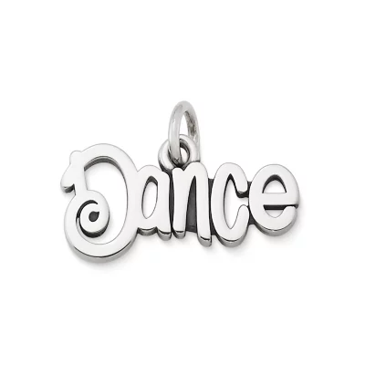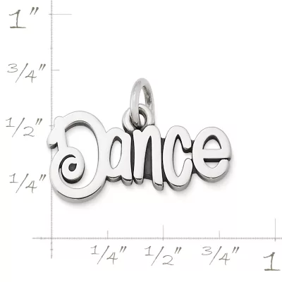 This sterling silver script charm is perfect for a dancer, or someone who’s always willing to dance like no one is watching. Perfect on your favorite bracelet or chain.