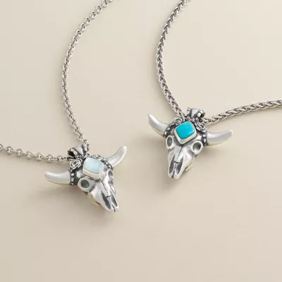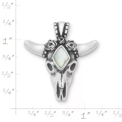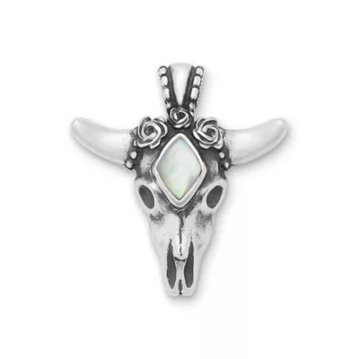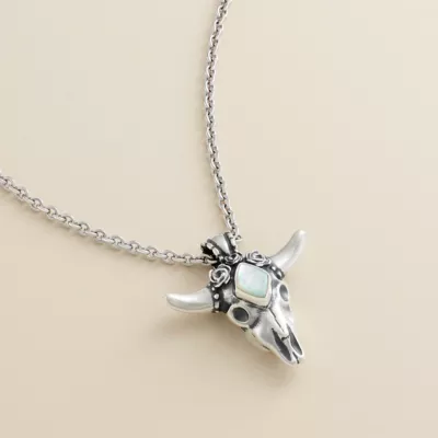A reimagining of the Desert Rose Charm, this sterling silver pendant exudes both strength and beauty. Inspired by America’s Southwest, the buff top gemstne adds a dash of elegance while the sun-bleached skull and rose in full bloom symbolize the balance of masculine and feminine.