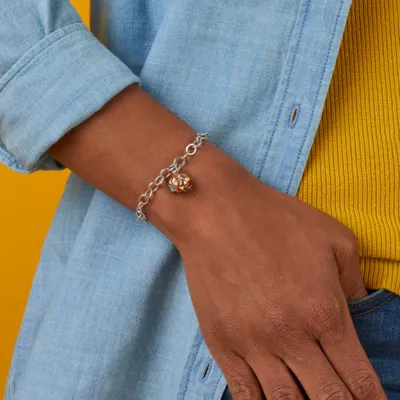 You want fries with that? This fun sterling silver cheeseburger charm features a bronze bun with vividly enameled melted cheese, fresh tomato and lettuce. It pairs especially well with any of our fast-food charms.