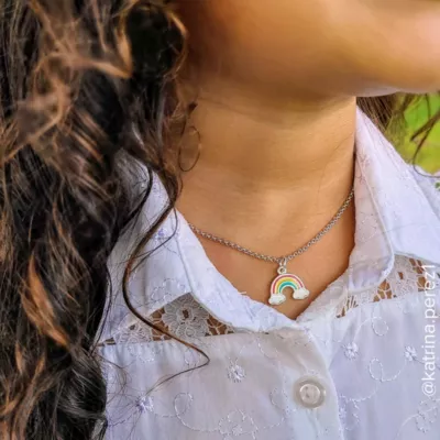 Always look for the rainbow after the storm with this sterling silver charm hand-painted with colorful enamel. The back can be engraved with initials, dates or messages.