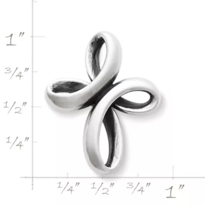A symbol of unending faith and eternal love, a beautiful cross is formed by the flowing contours of a single ribbon.