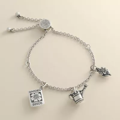 With “Garden Seeds” and a small flower on the front, this sterling silver charm captures the joy of springtime gardening. Originally released in 2003, this charm features a blank back for engraving special initials, dates or messages.