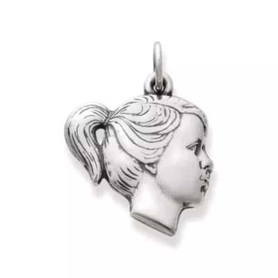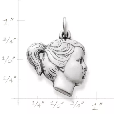 This classic, lovingly detailed girl’s profile captures the joy and wonder of youth in sterling silver.