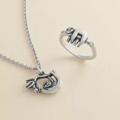 Hanging from a small branch, this sterling silver sloth is a playful reminder to live more slowly and treasure every moment.