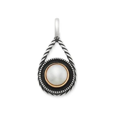 A half-round gemstone cabochon, set in a bronze bezel, is surrounded by sterling silver beading and framed by an artful drop of twisted wire. Complete the look by adding this pendant to your favorite chain. Pairs beautifully with other designs in the Marjan Collection.