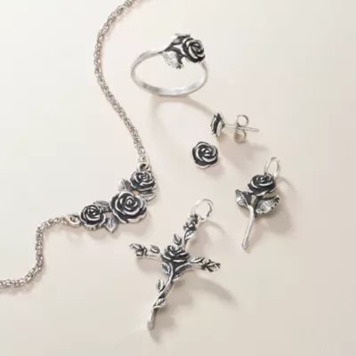 This delicately detailed depiction of one of nature’s most beautiful flowers is a shining symbol of love and beauty, captured in sterling silver or 14k gold.