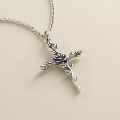Bear with you an enduring depiction of faith in sterling silver or 14k gold with this beautifully crafted Rosebud Cross Pendant.