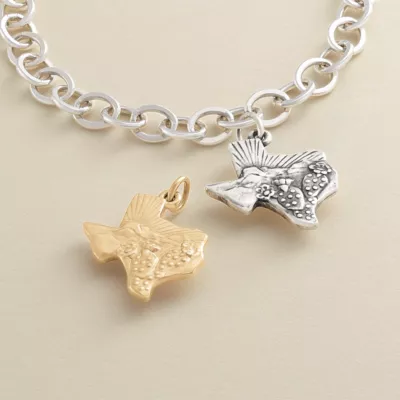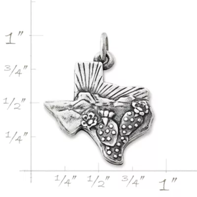 Prickly pear cacti, fresh air and expansive views of the Chisos Mountains in Big Bend National Park inspired the Texas Landscape Charm, which is available in sterling silver or 14K gold. Within the borders of this Texas-shaped charm, you can glimpse nature’s splendor and capture memories of exploring the state’s diverse scenery. The back of this charm is engravable and can be personalized with dates or the name of your traveling companion.