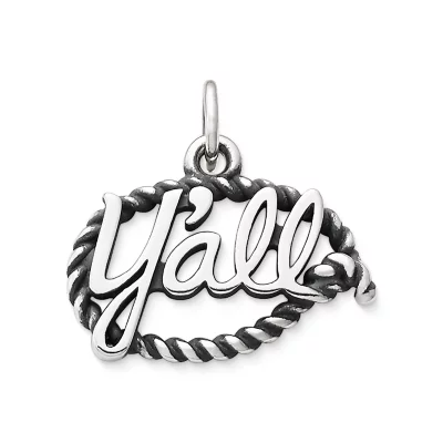 Hey, y’all! This Southern pronoun–framed in a sterling silver twisted wire lasso–makes a great addition to any charm bracelet or chain.